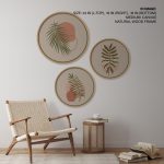 Set of 3 Boho Leaves Abstract – Circular Wooden Frames