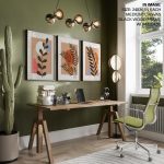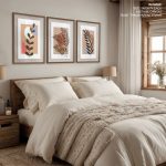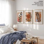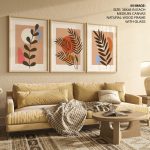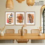 Wall Art | Set of 3 boho leaves botanical abstract | Small to XXXL Sizes • 50+ Framing Styles • Non Toxic