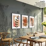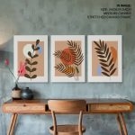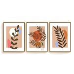 Wall Art | Set of 3 boho leaves botanical abstract | Small to XXXL Sizes • 50+ Framing Styles • Non Toxic