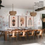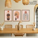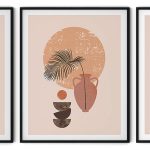 Set of 3 boho mid century abstract distressed geometric art - Wall Art, Hanging Wall Decor, Home Decor - BestOfBharat