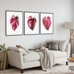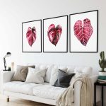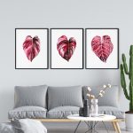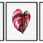 Wall Art | Set of 3 burgundy leaves botanical | Small to XXXL Sizes • 50+ Framing Styles • Non Toxic