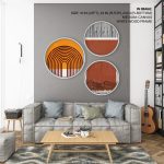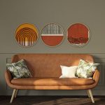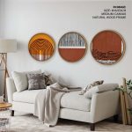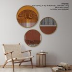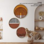 Set of 3 burnt brown yellow abstract - Circular Wall Art, Round Wall Decor - BestOfBharat