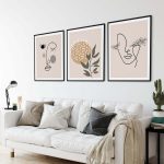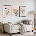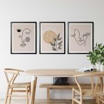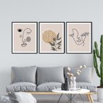 Framed Art | Set of 3 circle face botanical line drawing | 50+ Frame Styles • Museum Quality • Made in India