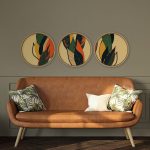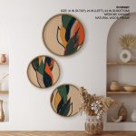 Set of 3 colorful abstract botanical - Circular Wall Art, Round Wall Decor - BestOfBharat