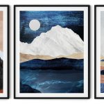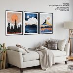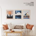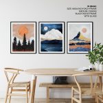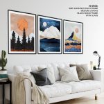 Set of 3 colorful mountains sun landscape - Wall Art, Hanging Wall Decor, Home Decor - BestOfBharat
