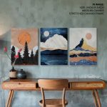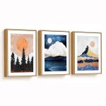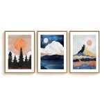Framed Art | Set of 3 colorful mountains sun landscape | 50+ Frame Styles • Museum Quality • Made in India