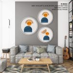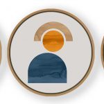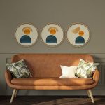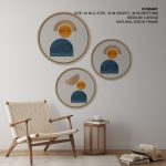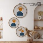 Wall Decor | Set of 3 Figurative Geometric Format - Circular Wooden Frames | Custom Size & Frame • Ready to Hang • Made in India • Eco-Friendly