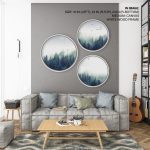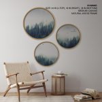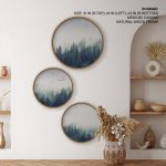 Set of 3 foggy forest and bird - Circular Wall Art, Round Wall Decor - BestOfBharat