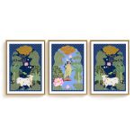 Framed Art | Set of 3 folk pichwai shrinathji and gaay | 50+ Frame Styles • Museum Quality • Made in India