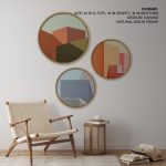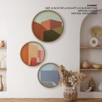 Set of 3 Geometrical Minimal Abstract - Circular Wooden Frames - Wall Art, Hanging Wall Decor, Home Decor - BestOfBharat
