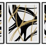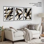 Wall Art | Set of 3 gold black brushstrokes abstract | Small to XXXL Sizes • 50+ Framing Styles • Non Toxic
