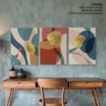 Set of 3 golden abstract plant botanical - Wall Art, Hanging Wall Decor, Home Decor - BestOfBharat