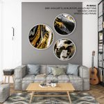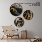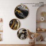 Set of 3 Golden Abstraction - Circular Wooden Frames - Wall Art, Hanging Wall Decor, Home Decor - BestOfBharat