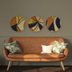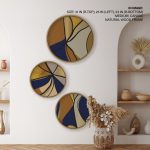 Set of 3 Golden Indigo Vanguard Abstract - Circular Wooden Frames