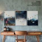Set of 3 golden mecurial birds in the sky - Wall Art Decor, Framed Painting, Home Decor - BestOfBharat