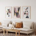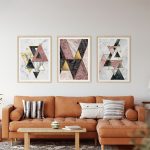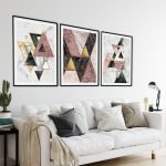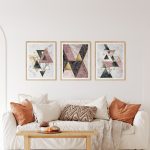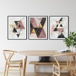Framed Art | Set of 3 golden pink marble geometrical figures abstract | 50+ Frame Styles • Museum Quality • Made in India