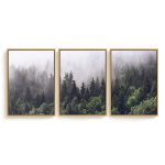 Framed Art | Set of 3 green foggy forest | 50+ Frame Styles • Museum Quality • Made in India