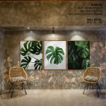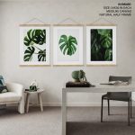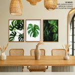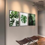Set of 3 green monstera leaves - Wall Art Decor, Framed Painting, Home Decor - BestOfBharat