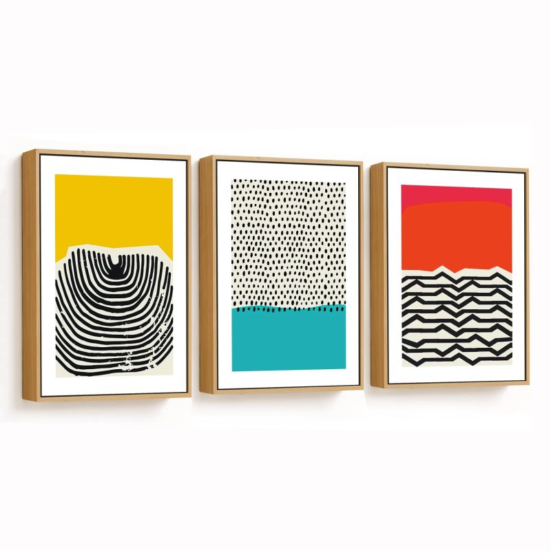 Wall Art | Set of 3 groovy abstract | Small to XXXL Sizes • 50+ Framing Styles • Non Toxic