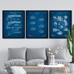 Set of 3 gun and bullet blueprint - Wall Art Decor, Framed Painting, Home Decor - BestOfBharat
