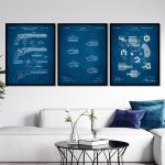Set of 3 gun and bullet blueprint - Wall Art, Hanging Wall Decor, Home Decor - BestOfBharat
