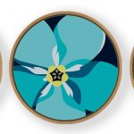 Set of 3 Indigo Portrait Flowers - Circular Wooden Frames