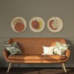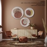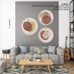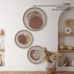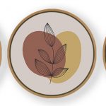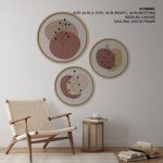 Wall Art | Set of 3 Mid Century Leaves Abstruse - Circular Wooden Frames | Small to XXXL Sizes • 50+ Framing Styles • Non Toxic