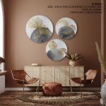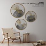 Set of 3 Minimal Botanical Abstract - Circular Wooden Frames - Wall Art, Hanging Wall Decor, Home Decor - BestOfBharat