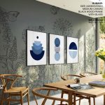 Set of 3 minimalist blue circle geometric shapes - Wall Art Decor, Framed Painting, Home Decor - BestOfBharat