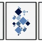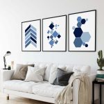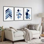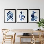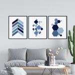 Framed Art | Set of 3 minimalist blue triangle geometric shapes | 50+ Frame Styles • Museum Quality • Made in India