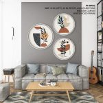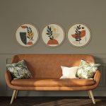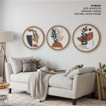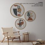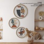 Set of 3 minimalistic boho botanical figure - Circular Wall Art, Round Wall Decor - BestOfBharat