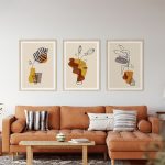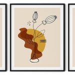 Wall Art | Set of 3 minimalistic boho line drawing botanical | Small to XXXL Sizes • 50+ Framing Styles • Non Toxic