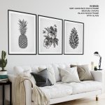 Set of 3 minimalistic pencil sketch pineapple, pine con and flower