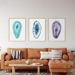 Wall Art | Set of 3 minimalistic watercolor agate | Small to XXXL Sizes • 50+ Framing Styles • Non Toxic