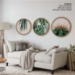 Set of 3 modern minimalistic botanical - Circular Wall Art, Round Wall Decor - BestOfBharat