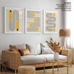 Wall Art | Set of 3 modern yellow computative | Small to XXXL Sizes • 50+ Framing Styles • Non Toxic
