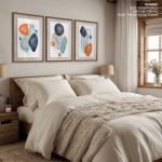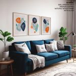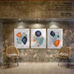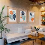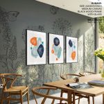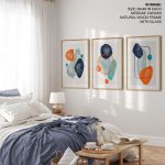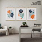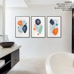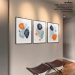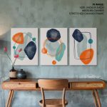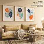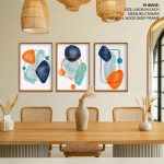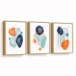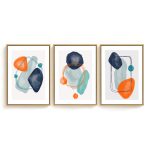 Framed Art | Set of 3 orange blue shapes abstract | 50+ Frame Styles • Museum Quality • Made in India