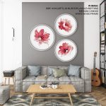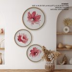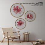 Set of 3 red pink beautiful flowers - Circular Wall Art, Round Wall Decor - BestOfBharat