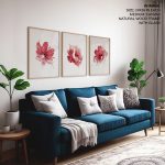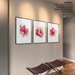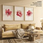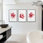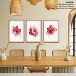 Set of 3 red pink beautiful flowers - Wall Art Decor, Framed Painting, Home Decor - BestOfBharat