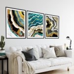 Wall Art | Set of 3 resin blue golden marble | Small to XXXL Sizes • 50+ Framing Styles • Non Toxic