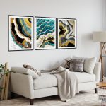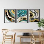 Set of 3 resin blue golden marble - Wall Art Decor, Framed Painting, Home Decor - BestOfBharat