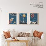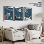 Set of 3 retro space rocket launch posters - Wall Art, Hanging Wall Decor, Home Decor - BestOfBharat