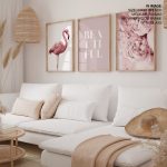 Set of 3 romantic flamingo and peony - Wall Art Decor, Framed Painting, Home Decor - BestOfBharat