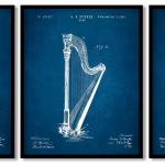 Set of 3 stringed musical instruments blueprint - Wall Art, Hanging Wall Decor, Home Decor - BestOfBharat