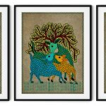 Set of 3 vintage gond barahsingha - BestOfBharat