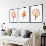 Set of 3 watercolor autumn tree #51 - Wall Art, Hanging Wall Decor, Home Decor - BestOfBharat