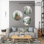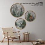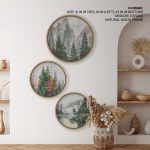 Set of 3 Watercolor Pine Trees - Circular Wooden Frames - Wall Art, Hanging Wall Decor, Home Decor - BestOfBharat