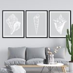 Framed Art | Set of 3 white seashell | 50+ Frame Styles • Museum Quality • Made in India