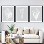 Framed Art | Set of 3 white seashell | 50+ Frame Styles • Museum Quality • Made in India