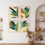 Set of 4 abstract foliage tropical leaves - Wall Art, Hanging Wall Decor, Home Decor - BestOfBharat